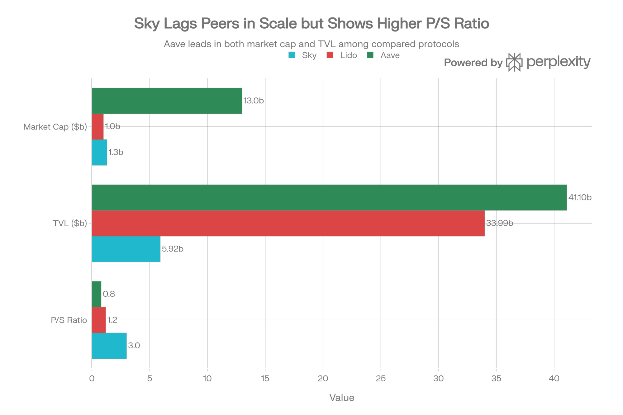 SKY Protocol valuation multiples vs. peer DeFi protocols (Lido, Aave)