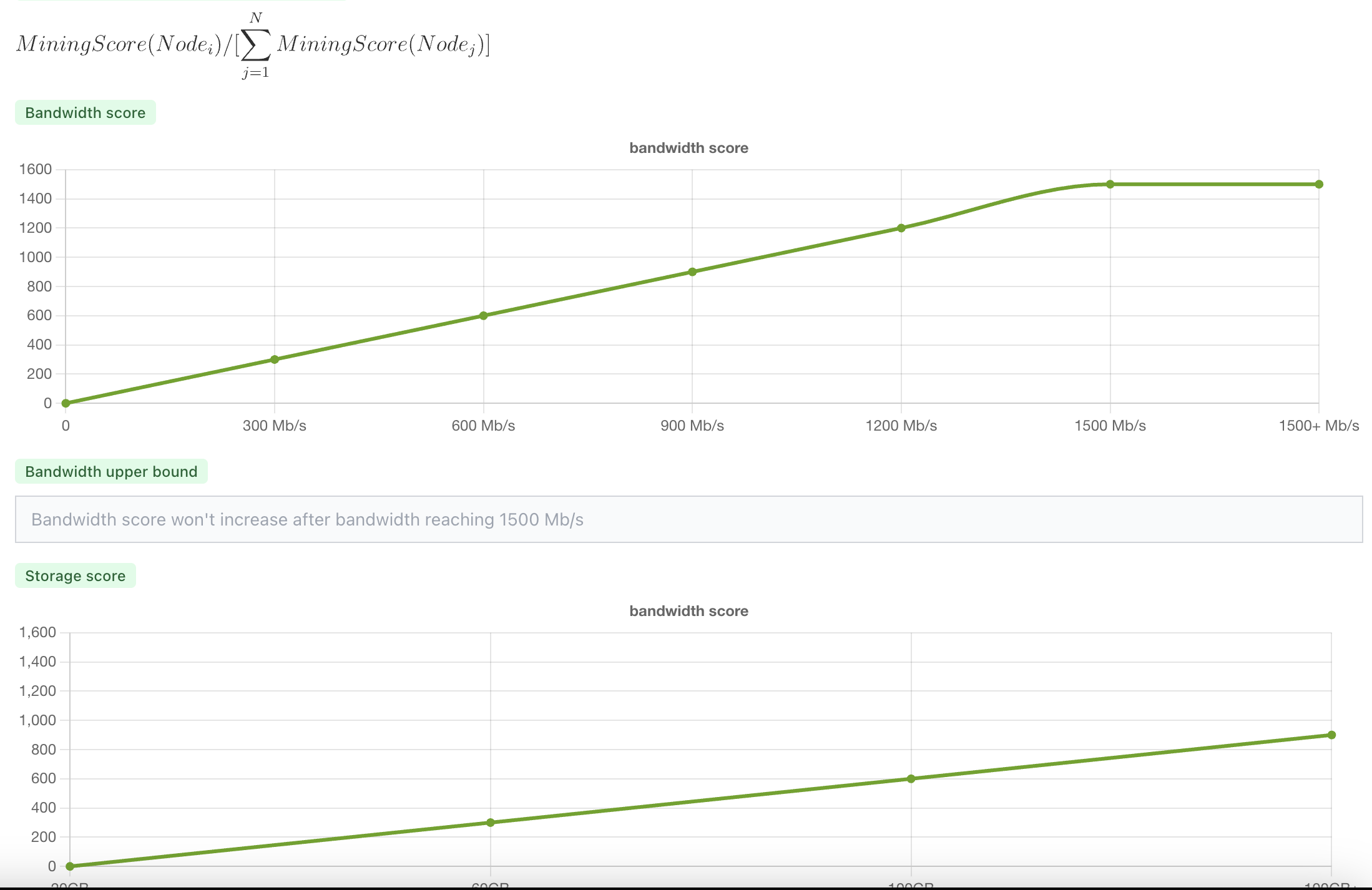 也可以很容易发现挖矿很鼓励你用数据中心的机器,也就是带宽越高、存储数据量越大奖励的分数越高(有一个最大值)。