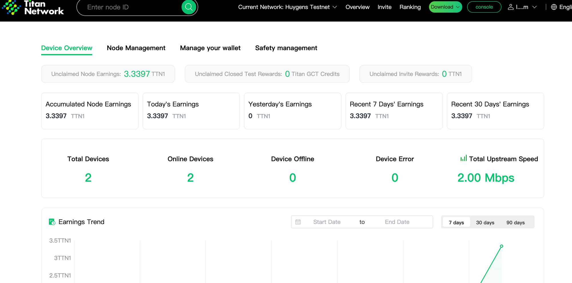 titan-edge bind --hash=$id https://api-test1.container1.titannet.io/api/v2/device/binding"PS:因为现在 Dockerfile 存在一些问题所以需要自己安装 ca-certificates,不然会出现 x509 的报错问题。